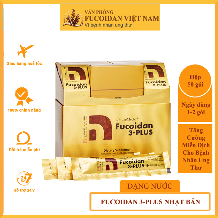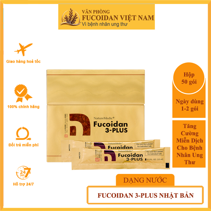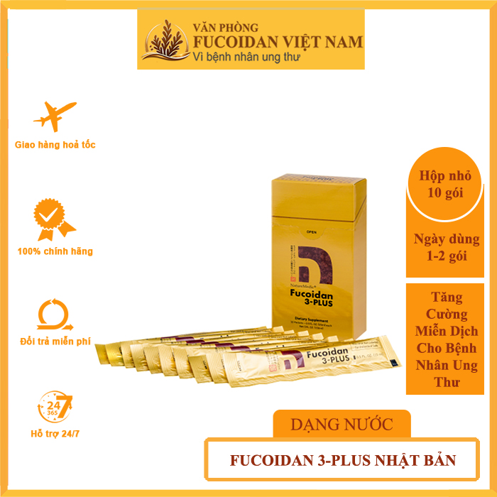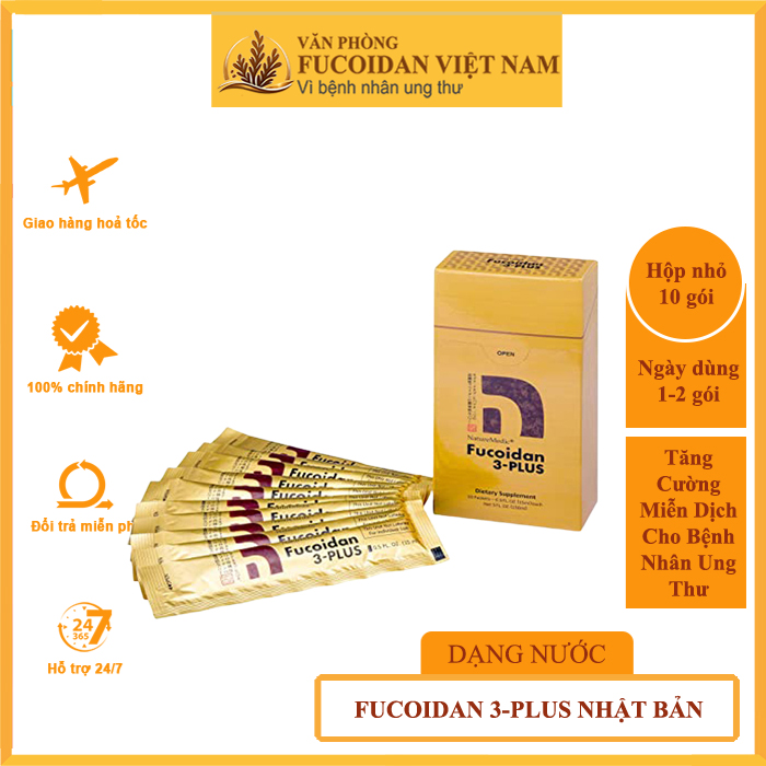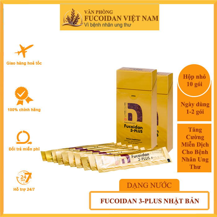 - Sản phẩm dạng nước: 2200mg fucoidan/1 gói cùng với nấm agaricus và các Vitamin nhóm B